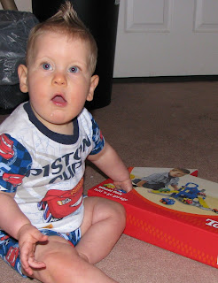 My buddy Reese sent me an early birthday present and today I got to open it!! It was part of a "secret pal" that Mommy had with her p.com friends. Me & 9 other of my p.com friends picked a friend and bought a birthday present, since we all have birthdays in April. All 10 of us got our presents, and Mommy and her friends couldnt wait so they agreed to let us open them today. I got a really cool car garage. It opens and closes and has a few ramps. I love it!! Thank You Reese, and Happy Birthday to you too!!!!